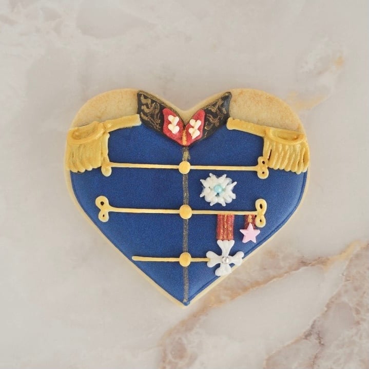 ハート型にお衣装をデザインしたアイシングクッキー。お写真をお送り頂いてから丹精込めて一つひとつ手作りしております。